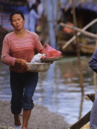 「看来是新学期的教科书今天送来国校。阿狗啊!没代志去学校帮忙主任搬册。」   时间过了八月,吃过中餐,阿昌带着小跟班阿狗在庙口看人下棋,阿狗嘴里咬着吸管,喝着沙士。   看着一辆陌生的小货车往庄里开进来,从后车斗看到是一捆一捆的新书,阿昌推着阿狗的头要他去帮忙。   不是真的以为阿狗会去帮忙做苦活,而是阿昌看到春花正提着菜篮往杂货店来。   不甩掉阿狗这个跟屁虫,怎有机